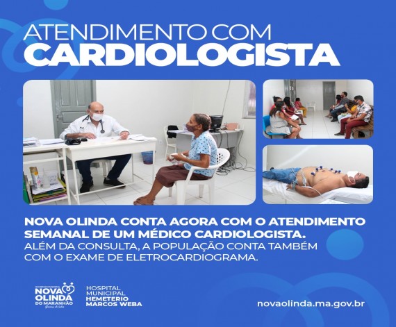 O município de Nova Olinda do Maranhão agora conta com atendimento exclusivo de um cardiologista especializado todas as sextas-feiras no Hospital Municipal Hemetério Marcos Weba. Além da consulta, é possível realizar o exame de eletrocardiograma.