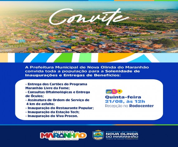Sua presença é fundamental! Venha celebrar conosco esse grande momento de transformação e progresso para Nova Olinda do Maranhão.